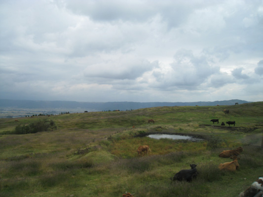 で、到着したのは「草千里」というところ。ただ今阿蘇山は絶賛噴火中なので、ここが見学ができるぎりぎりのラインです。