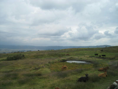 緩やかな山を上がっていくと、牛や馬がのんびりと過ごしています。馴染みのある山岳風景とかなり違っていて不思議な光景です。