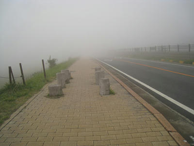 着いた時は天気が良かったのに、途中から雲が立ち上ってきて、あっという間に濃霧になりました↓