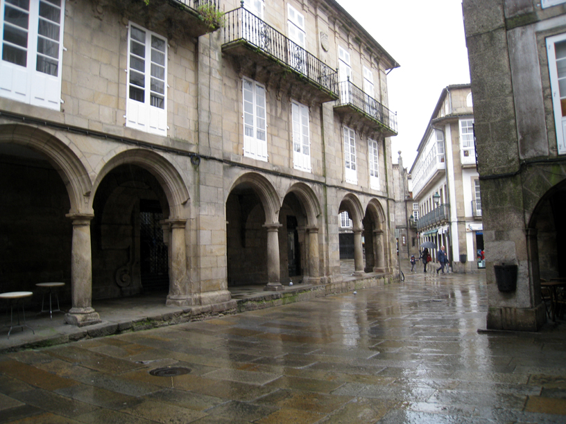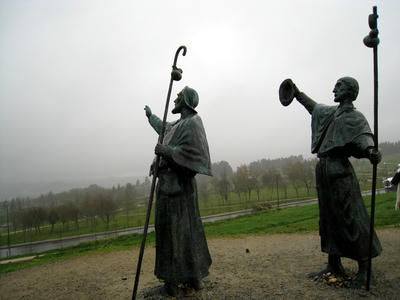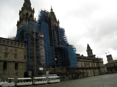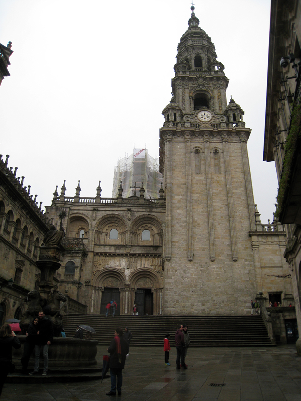 雨でかすんでますが、像が指差す先に、サンチャゴ・デ・コンポステーラがあります。