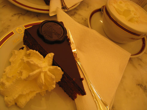 ザッハトルテの元祖のお店「ザッハー」のザッハトルテとメランジェ。