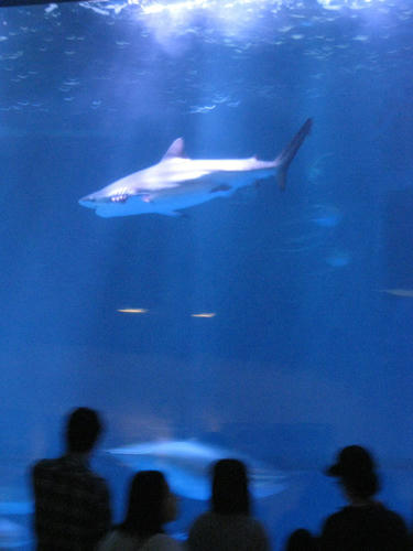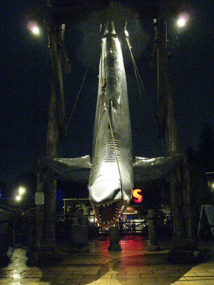 夜のライトアップでめちゃ怖いジョーズ。