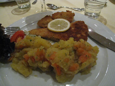 右の団子はクネーデルという料理で、パンを固めて作ってあります。
