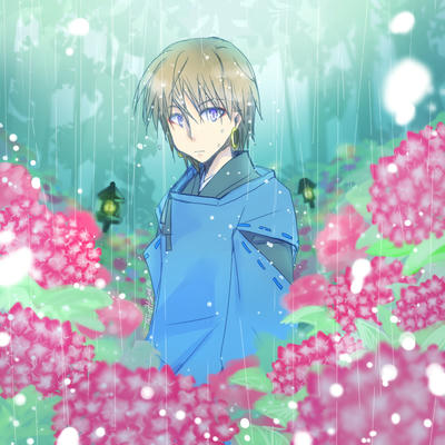 赤い紫陽花と日の光が入らない雨林でもっと怖い感じを出そうとしたのに、なんかものたりない……。