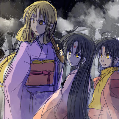 お祝い絵は仏頂面なおにーさんですが、CRメンバーは着せ替え人形のごとく、色々な服を着せたりしてるけど、百鬼メンバーはあまり描いていないなーということと、去年が隻だったので、今回は百鬼で。ということで。