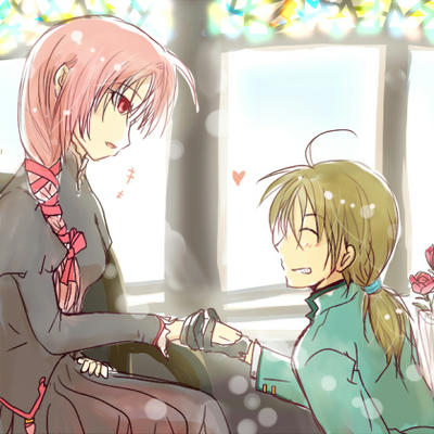ふっと思いついた構図↓だと、若い方がいいかなーってことで、結婚したかしてないかの頃(20代前半)にしてみました。色塗り途中で甘々な雰囲気すぎたか(当社比)と思ったけど、通常運転でしたので仕方ない(ゑ)