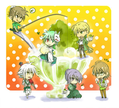 他にも緑なキャラのいますが、キャラのバランスとか考えてこんな感じのチョイスになりました。赤いのに比べるとインテリっぽいのが多いですな……。