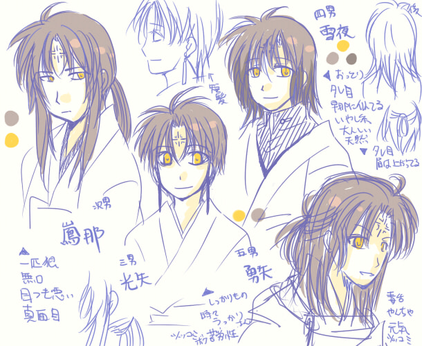 緋津耶、早耶、沙綺耶以外の兄弟たちも出したいので、と見た目を"まじめに"らくがき。