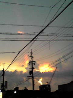 夕日の隣で稲妻が横に走ってました。