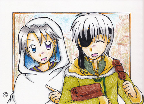 そんなこんなで、楽しく過ごさせていただいたわけですが、前回よりお互い準備万端で挑んだお絵かき大会で、諷月さんに二枚(カラー!)、リクエストで描いていただきましたv