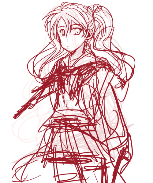 最初は黒で描いて、色を赤系に変えてます。肌はピンク系。