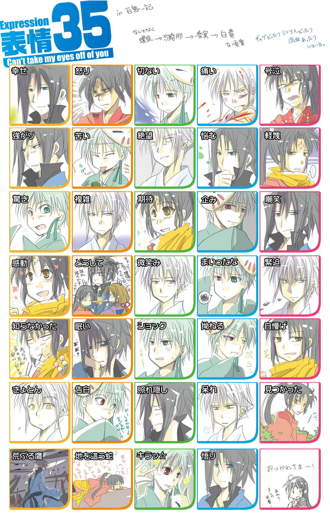 ちなみに、真ん中三段の表情群がお気に入りです。
