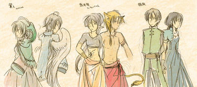 左から、翼人(よくじん・つばさびと)、獣耳(じゅうじ)族、龍族。